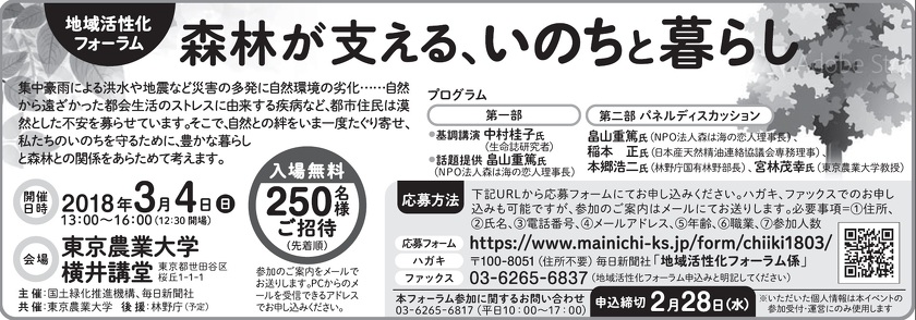 地域活性化フォーラム「森林が支える、いのちと暮らし」開催のお知らせ