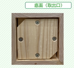 - 底面(取出口):4箇所ネジ留め。取出しにはプラスドライバーが必要です。