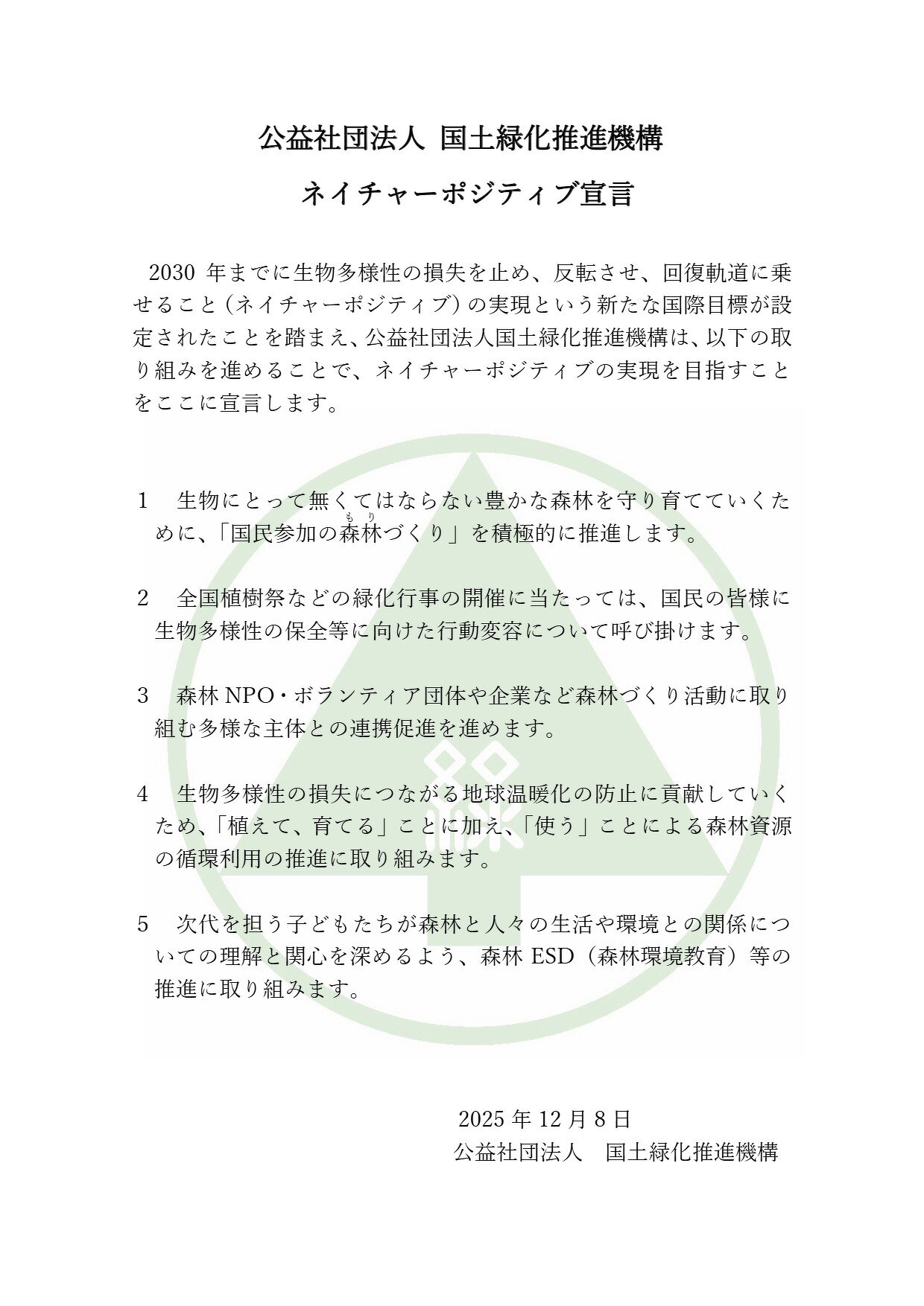 国土緑化推進機構「ネイチャーポジティブ宣言」