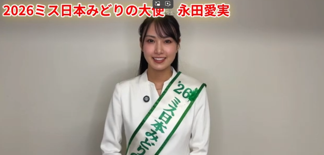 令和8年1月26日(月)に「第58回ミス日本コンテスト2026」が開催され、「2026ミス日本みどりの大使」に永田 愛実(ながた まなみ)さんが選定(受賞)されました。