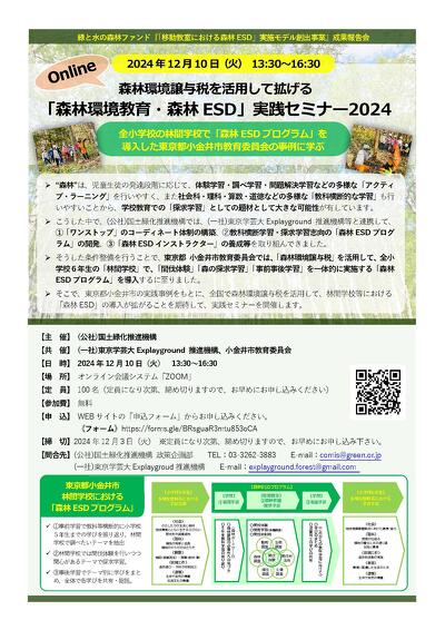 【終了しました】森林環境譲与税を活用して拡げる「森林環境教育・森林ESD」実践セミナー2024
