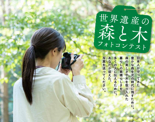 公益社団法人国土緑化推進機構及び一般財団法人日本森林林業振興会は、林野庁、環境省、世界遺産の地元新聞社等の後援により、平成18年以降、「世界遺産 の森と木」フォトコンテストをこれまで5回実施しています。